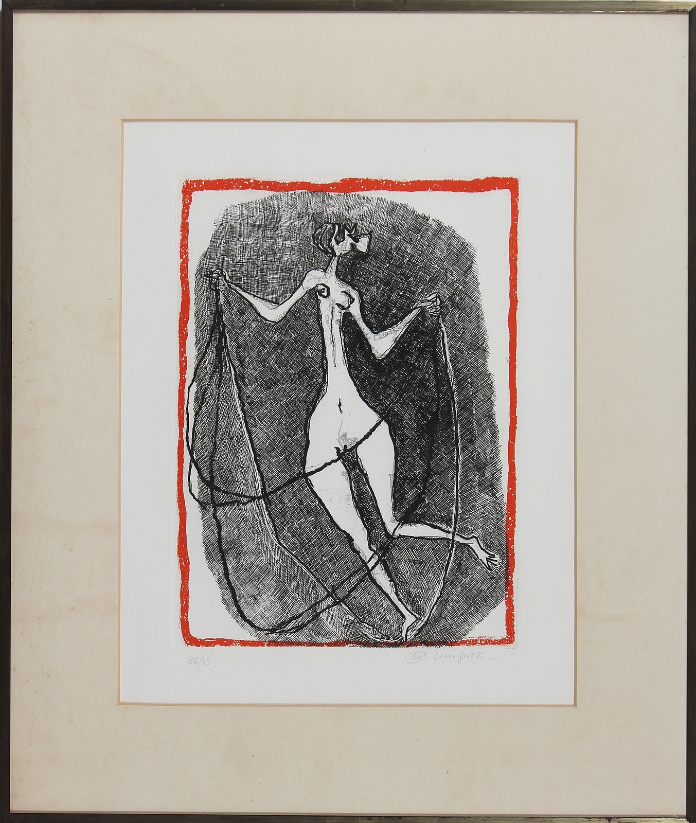 MINGUZZI LUCIANO (1911 - 2004) Senza titolo. Acquaforte. Cm 45,00 x 57,00. 26/99. Firma e tiratura in basso a matita. Cornice presente