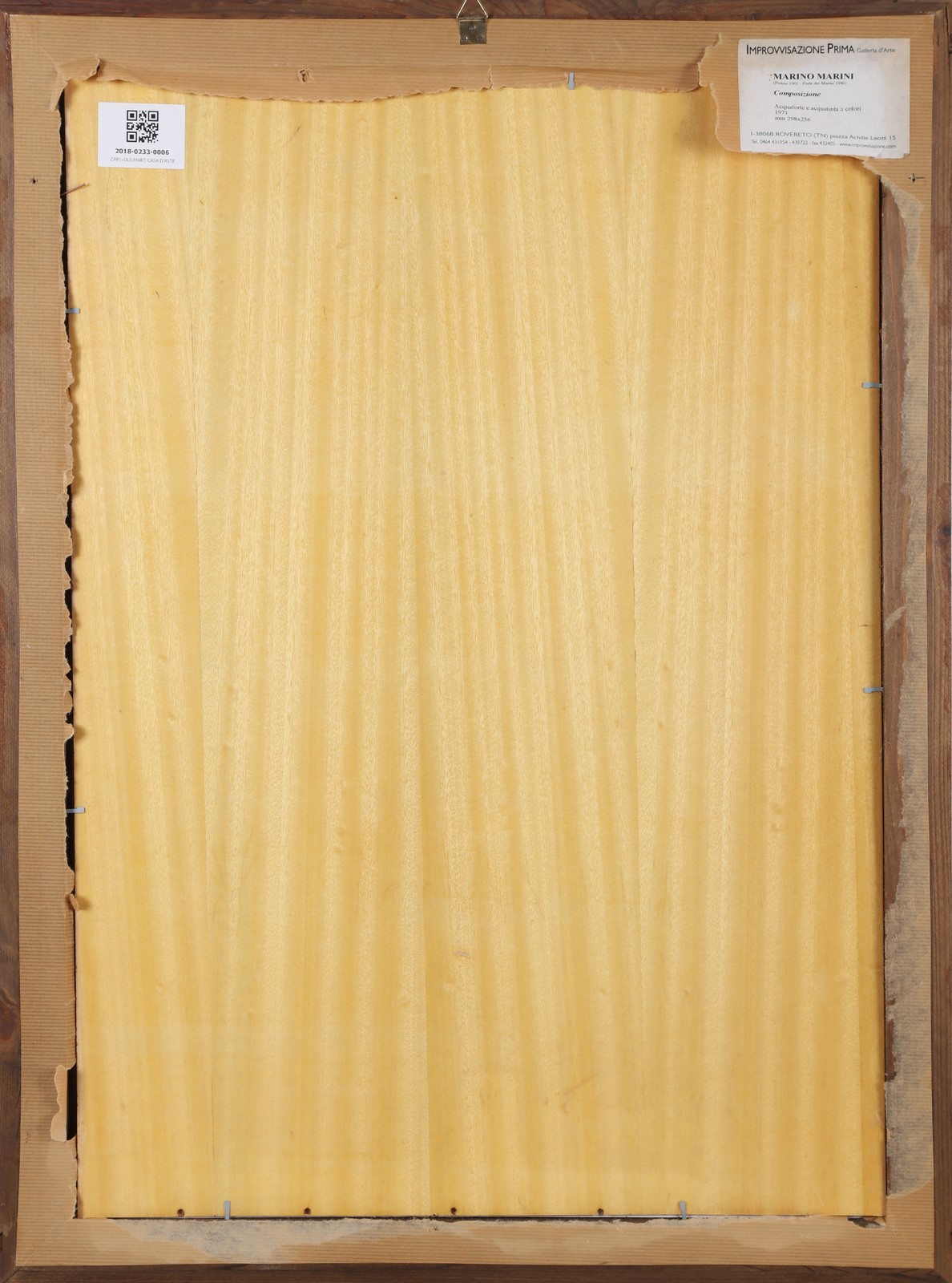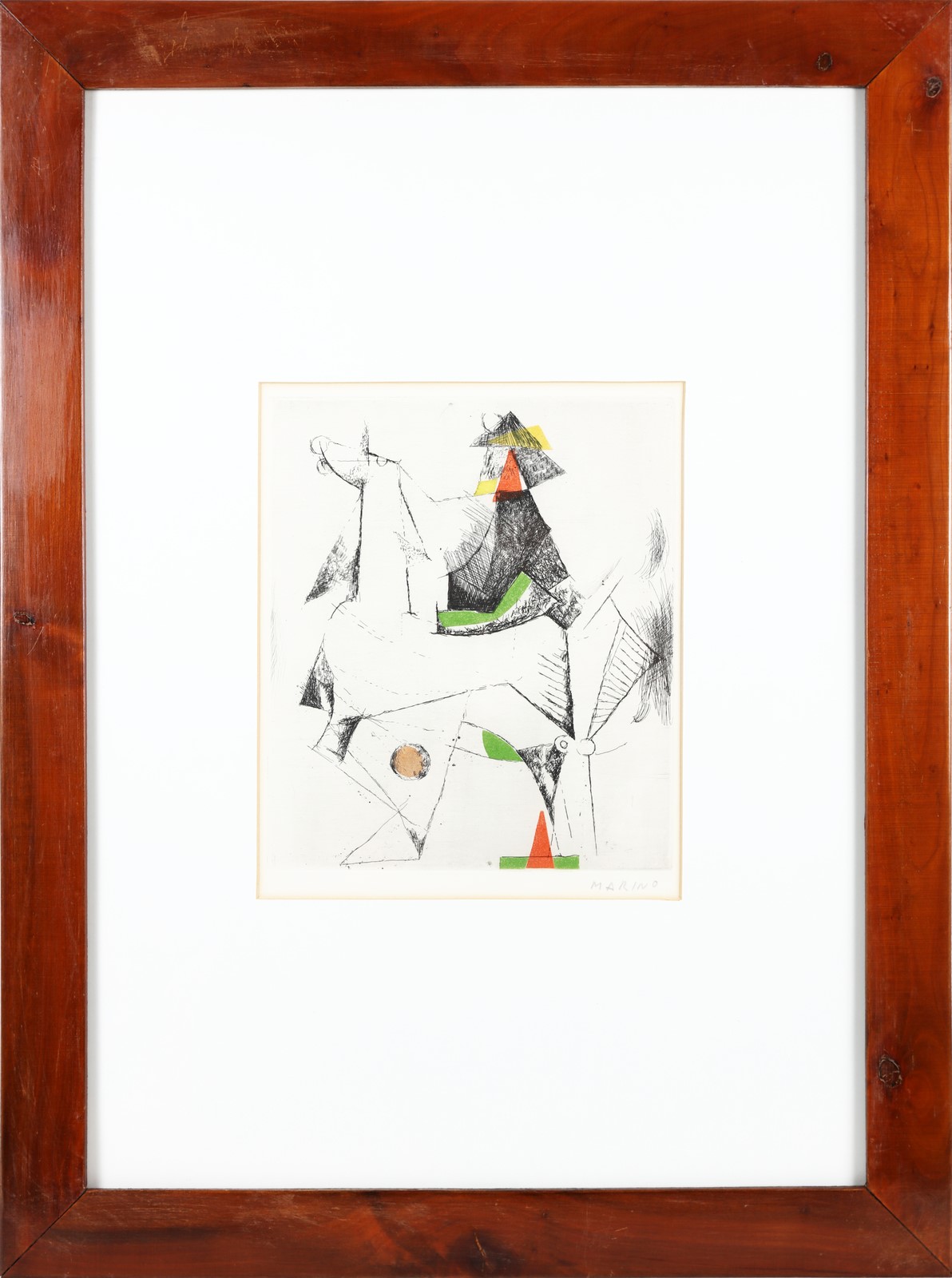MARINI MARINO (1901 - 1980) Composizione. 1971. Acquaforte, acquatinta. Cm 25,60 x 29,80. Firma a matita in basso a destra. Non presente la tiratura. Al retro cartiglio descrittivo Galleria d'are Improvvisazione Prima, Rovereto. L'opera è compresa nella serie Tout Près pubblicata in 95 esemplari nel 1971 da XX Siècle, Paris, e Lèon Amiel, New York. Questo esemplare fa parte di copie riservate ai collaboratori. . Cornice presente