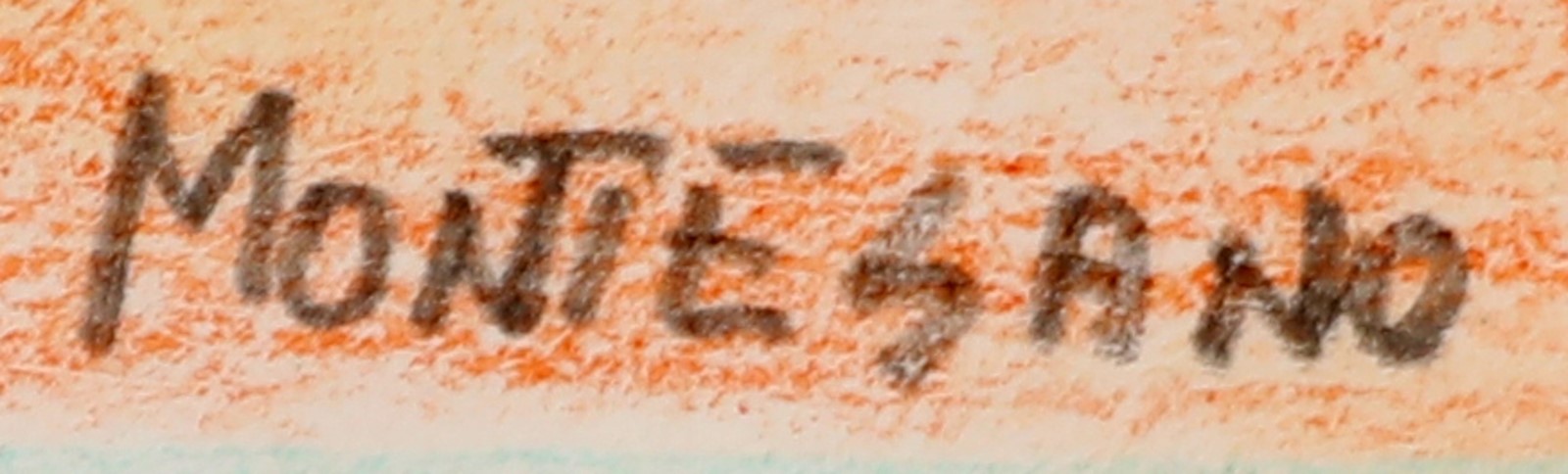 MONTESANO GIAN MARCO (n. 1949) San Giorgio e il drago. 1985. Pastello su carta. Cm 22,00 x 30,00. Firma in basso a destra. Autentica dell'artista su fotografia. . Cornice presente