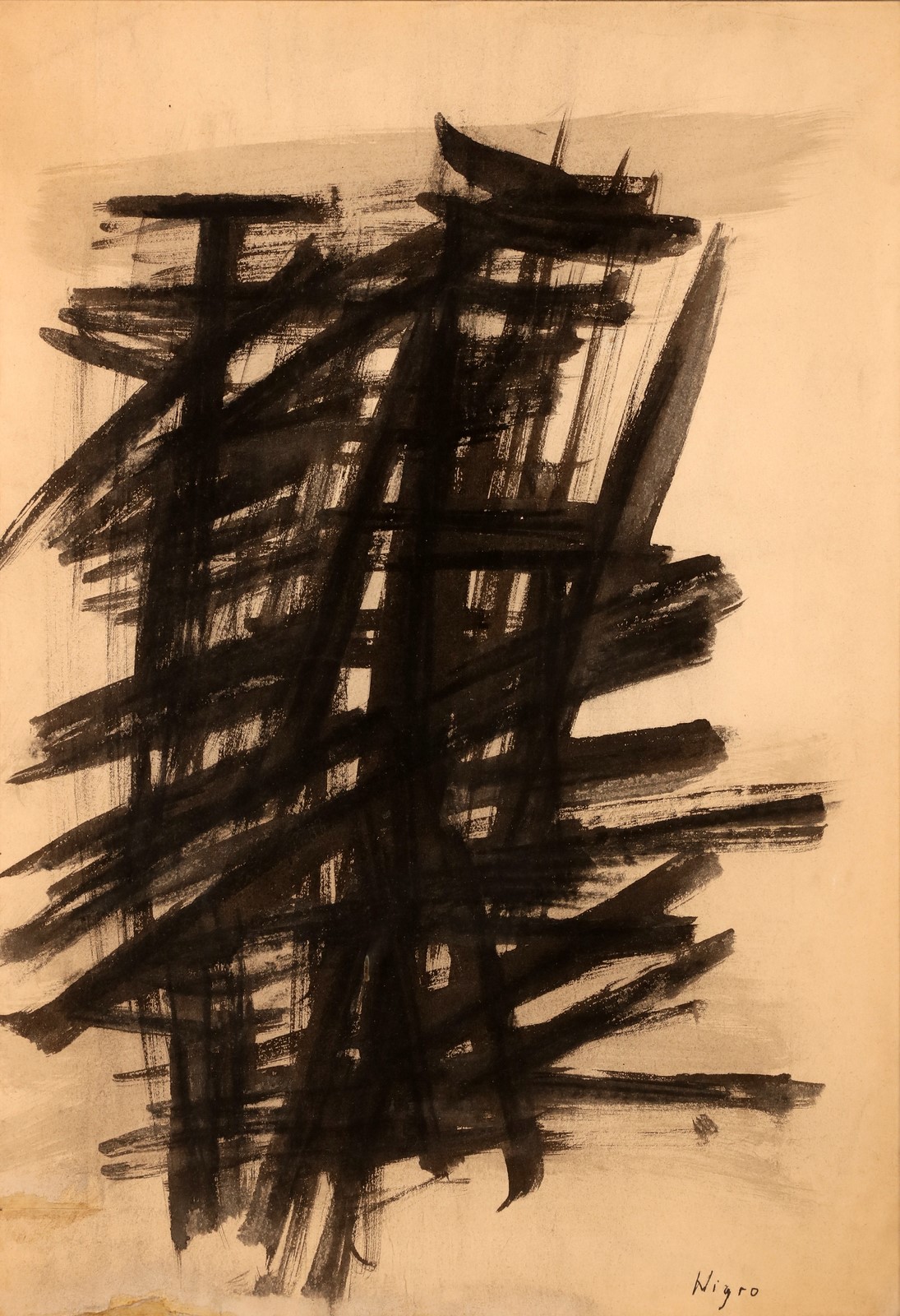NIGRO MARIO (1917 - 1992) Senza titolo. Tecnica mista su carta. Cm 34,00 x 50,00. Firma in basso a destra. . Cornice presente