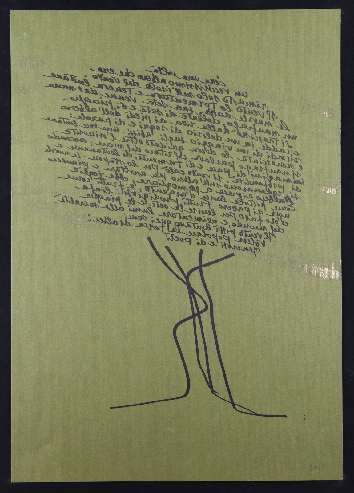 LAI MARIA (1919 - 2013) Senza titolo. Tecnica mista su carta. Cm 38,00 x 48,00. Firma e anno in basso a destra. Esposizioni: rassegna "ARTE IN ROSA", 18/11/2017 al 7/01/2018 presso il museo di Olzai. Pubblicazioni: Maria Lai edizioni Elisso 2017 pag.299.