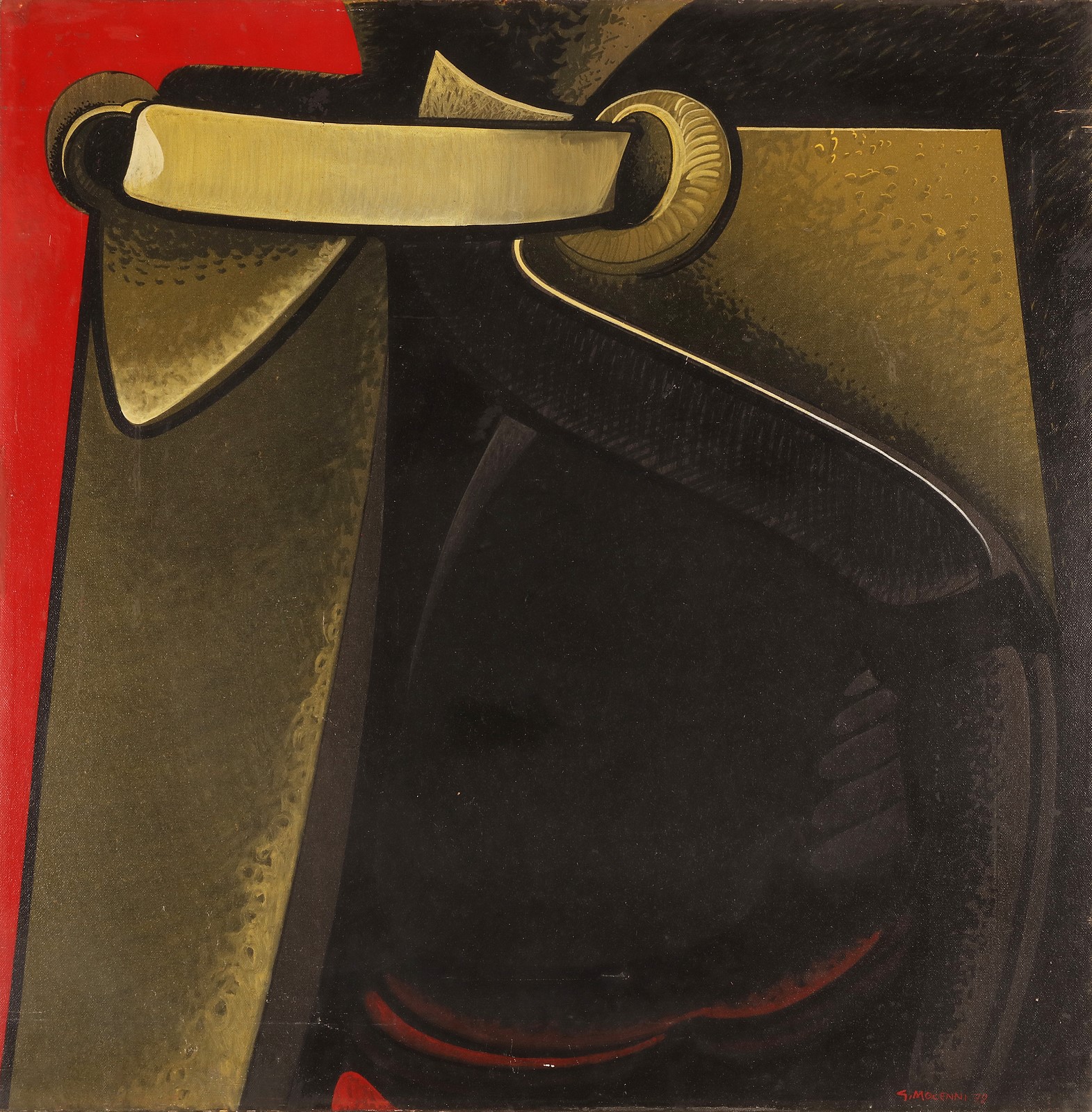 MOCENNI GUALTIERO (n. 1935) Lotto composto da n. 2 opere. Isola trappola. Pensiero. 1972. Acrilico su tela. Cm 70,00 x 70,00. Al retro titolo, firma e anno. Entrambe le opere presentano l'autentica dell'artista su fotografia. Dimensioni opera n.2: 50x60 cm.