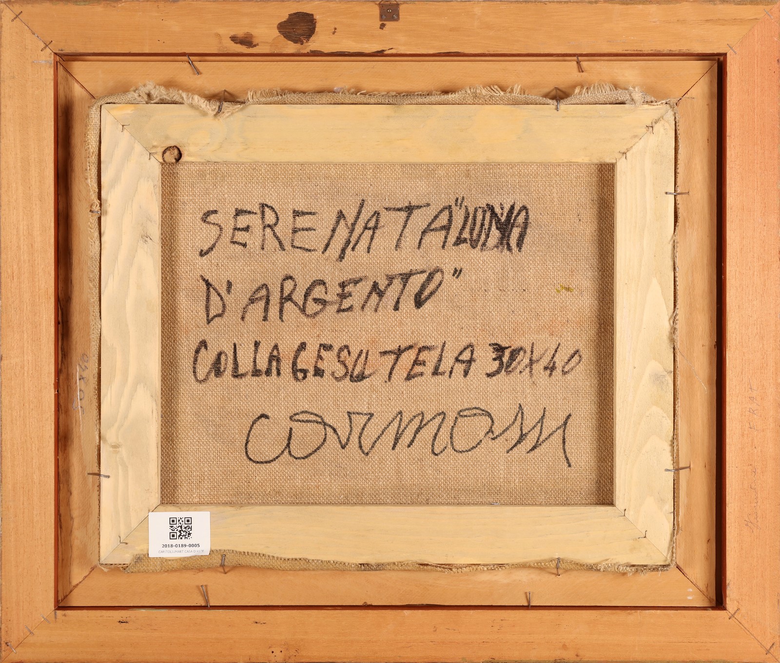 CARMASSI ARTURO (n. 1925) Serenata Luna d'argento. Collage su tela. Cm 46,50 x 39,50. Al retro titolo e firma. Autentica dell'artista su fotografia. Cornice presente