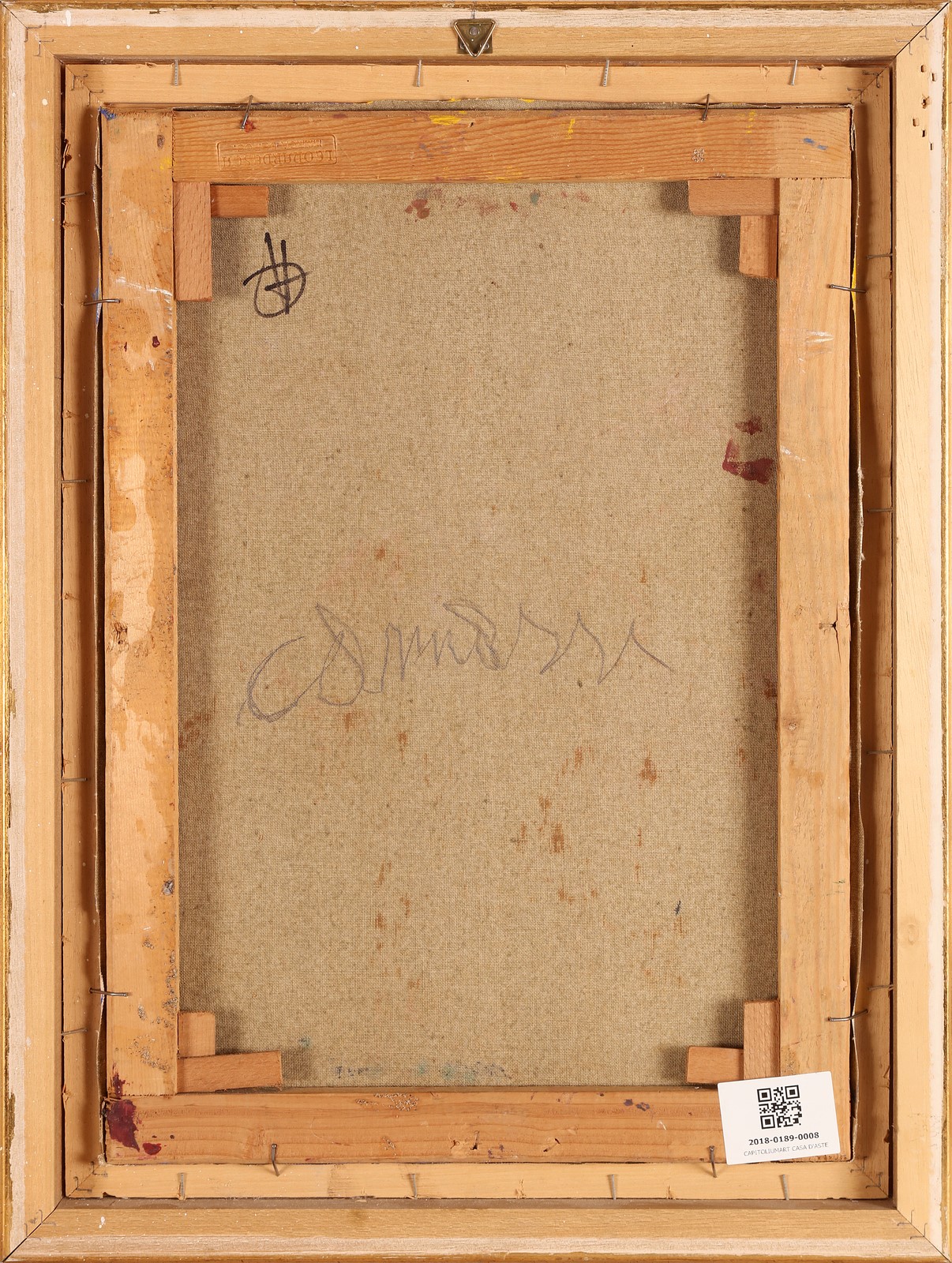 CARMASSI ARTURO (n. 1925) Senza titolo. Tecnica mista su tela. Cm 35,00 x 50,00. Al retro firma. Autentica dell'artista su fotografia. Cornice presente