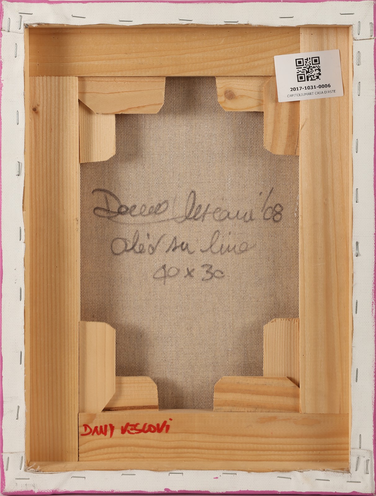 VESCOVI DANY (n. 1969) Senza titolo. 2008. Olio su tela . Cm 30,00 x 40,00. Al retro firma e anno.