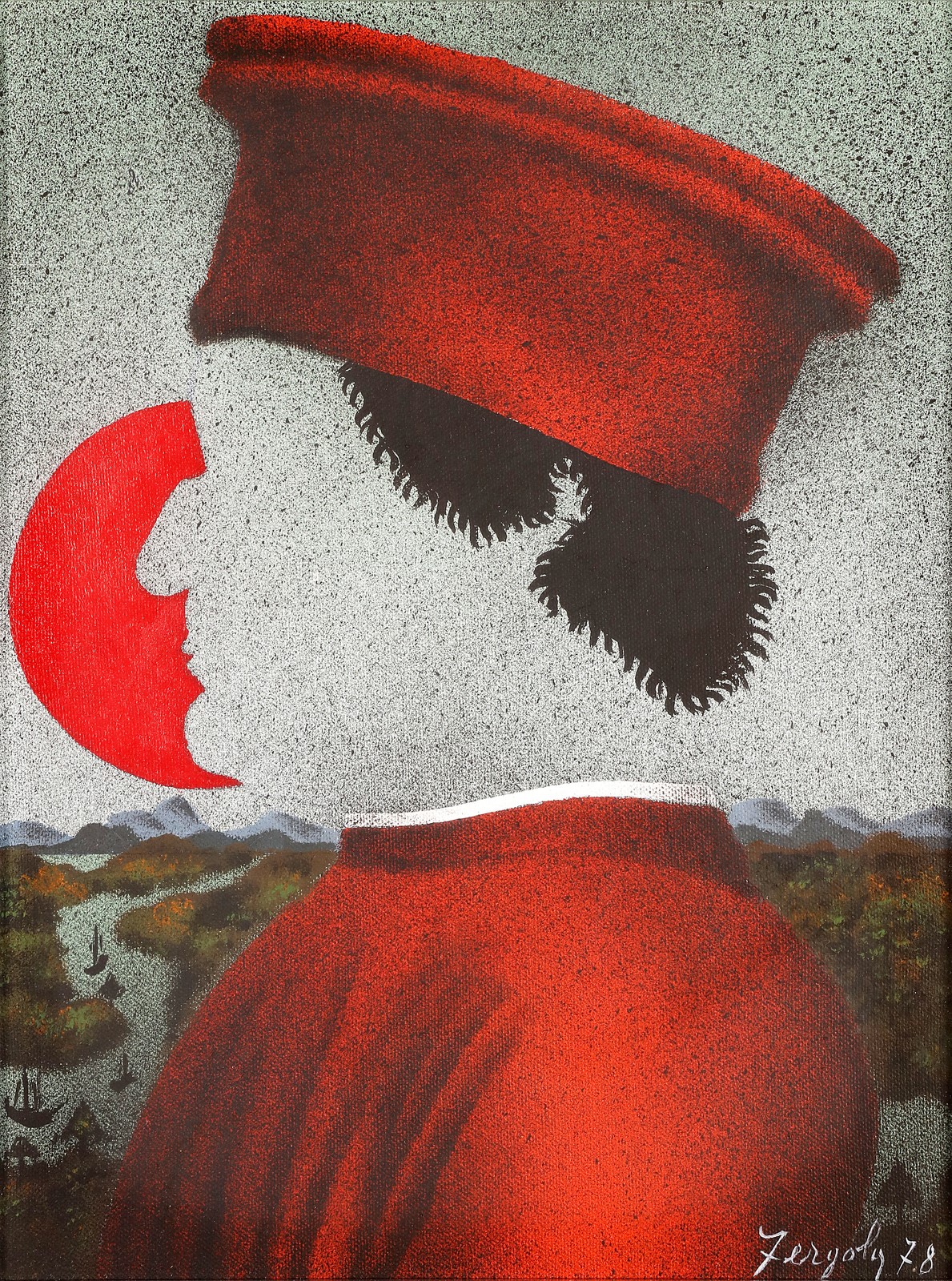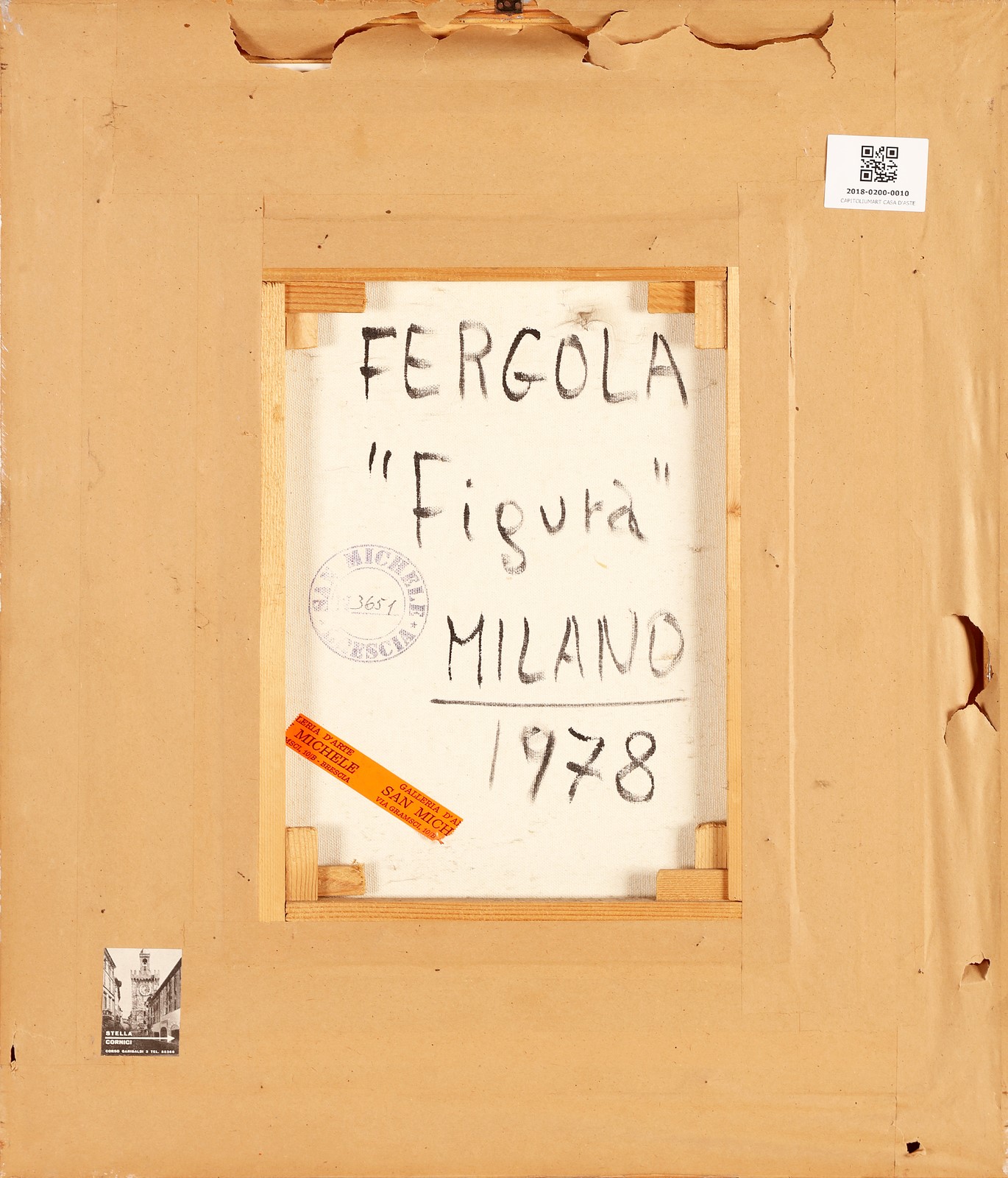 FERGOLA SERGIO (1936 - 1994) Figura. 1978. Acrilico su tela. Cm 30,00 x 40,00. Firma e anno in basso a destra. Al retro titolo, firma, anno e timbro Galleria S. Michele, Brescia. Cornice presente