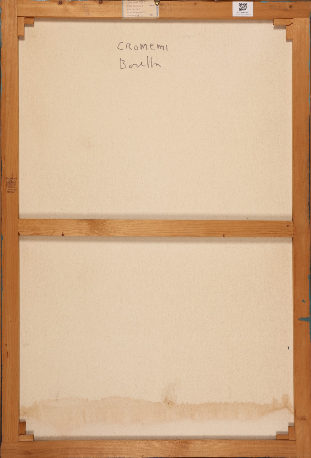BORELLA ROCCO (1920 - 1994) Cromemi. 1965. Olio su tela . Cm 80,00 x 120,00. Al retro titolo, firma, cartiglio descrittivo e timbro E. Dordoni, Genova. Cornice presente