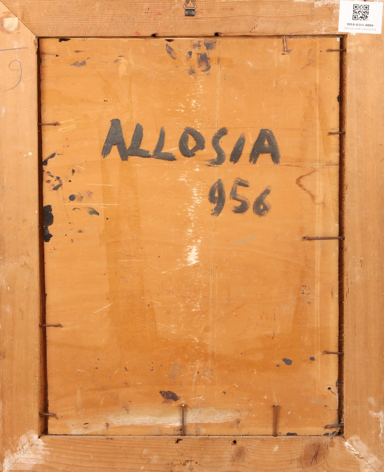 ALLOSIA GIUSEPPE (1910 - 1983) Senza titolo. 1956. Tecnica mista su tavola. Cm 37,00 x 50,00. Firma in basso a sinistra. Al retro firma e anno. Cornice presente