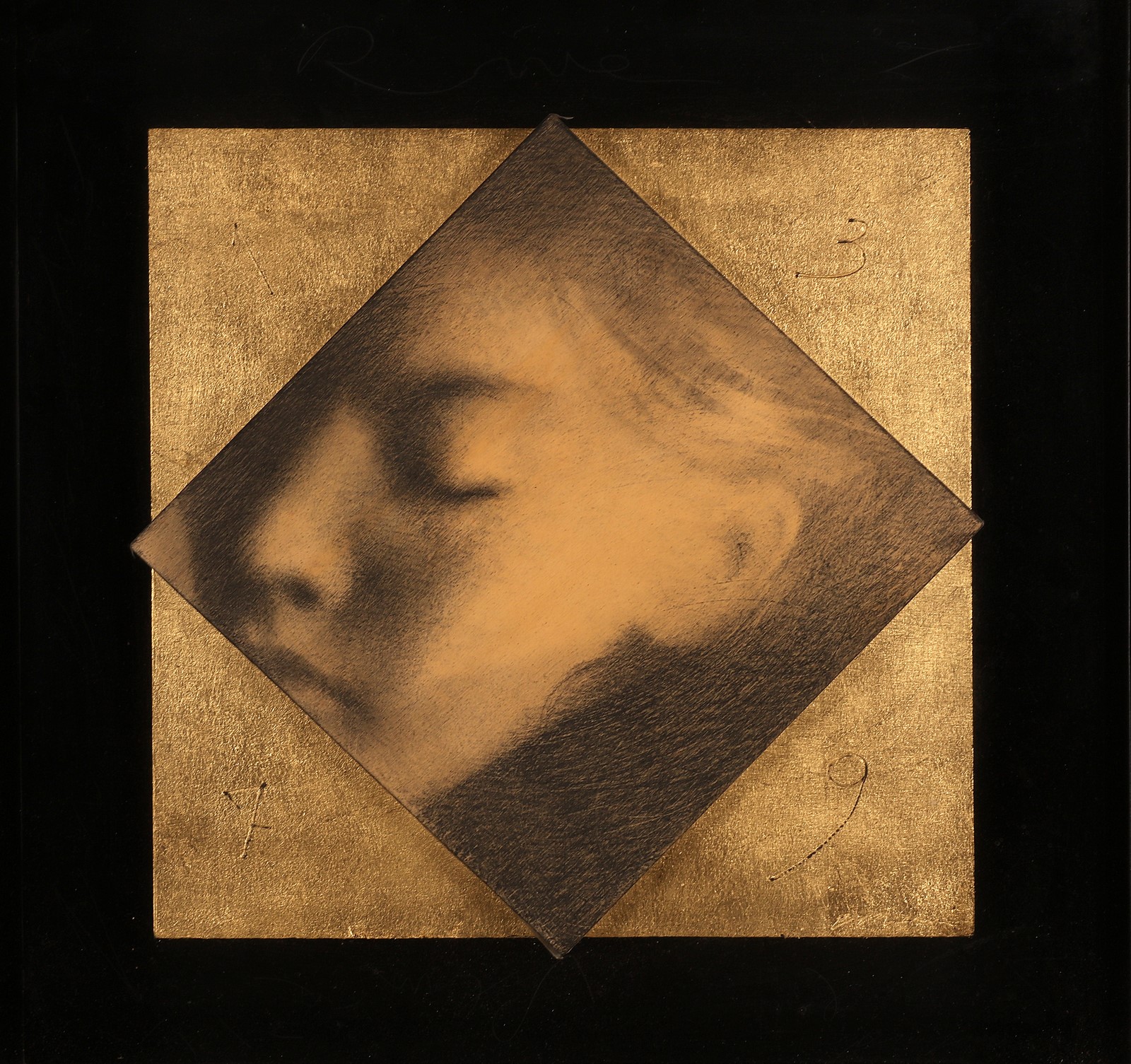 GALLIANI OMAR (n. 1954) Senza titolo. 2000. Tecnica mista su tavola. Cm 46,00 x 46,00. Firma in basso a destra. Cornice presente