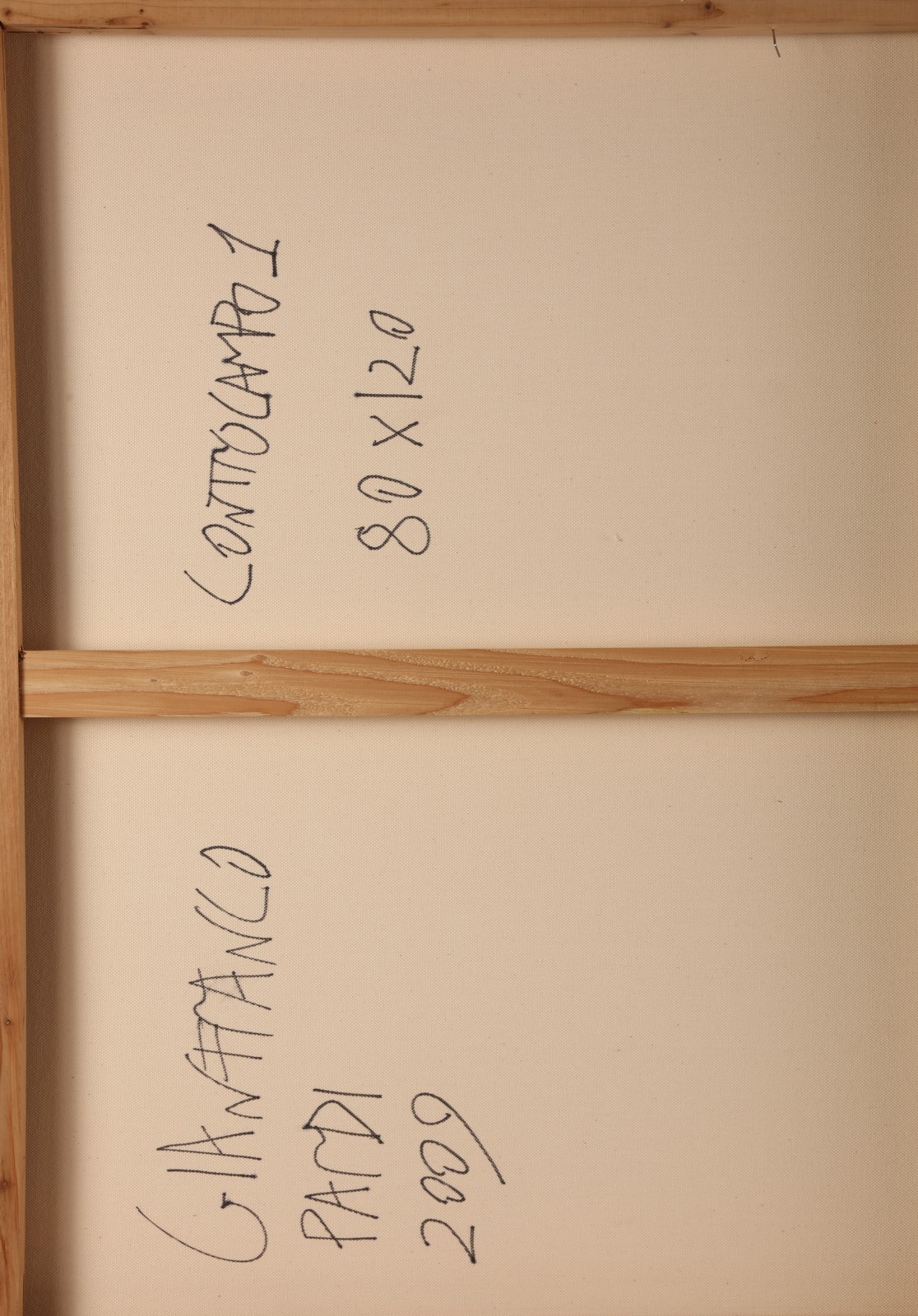 PARDI GIANFRANCO (n. 1933) Controcampo 1. 2009. Acrilico su tela. Cm 80,00 x 120,00. Al retro titolo, firma e anno. Autentica dell'artista su fotografia. Cornice presente