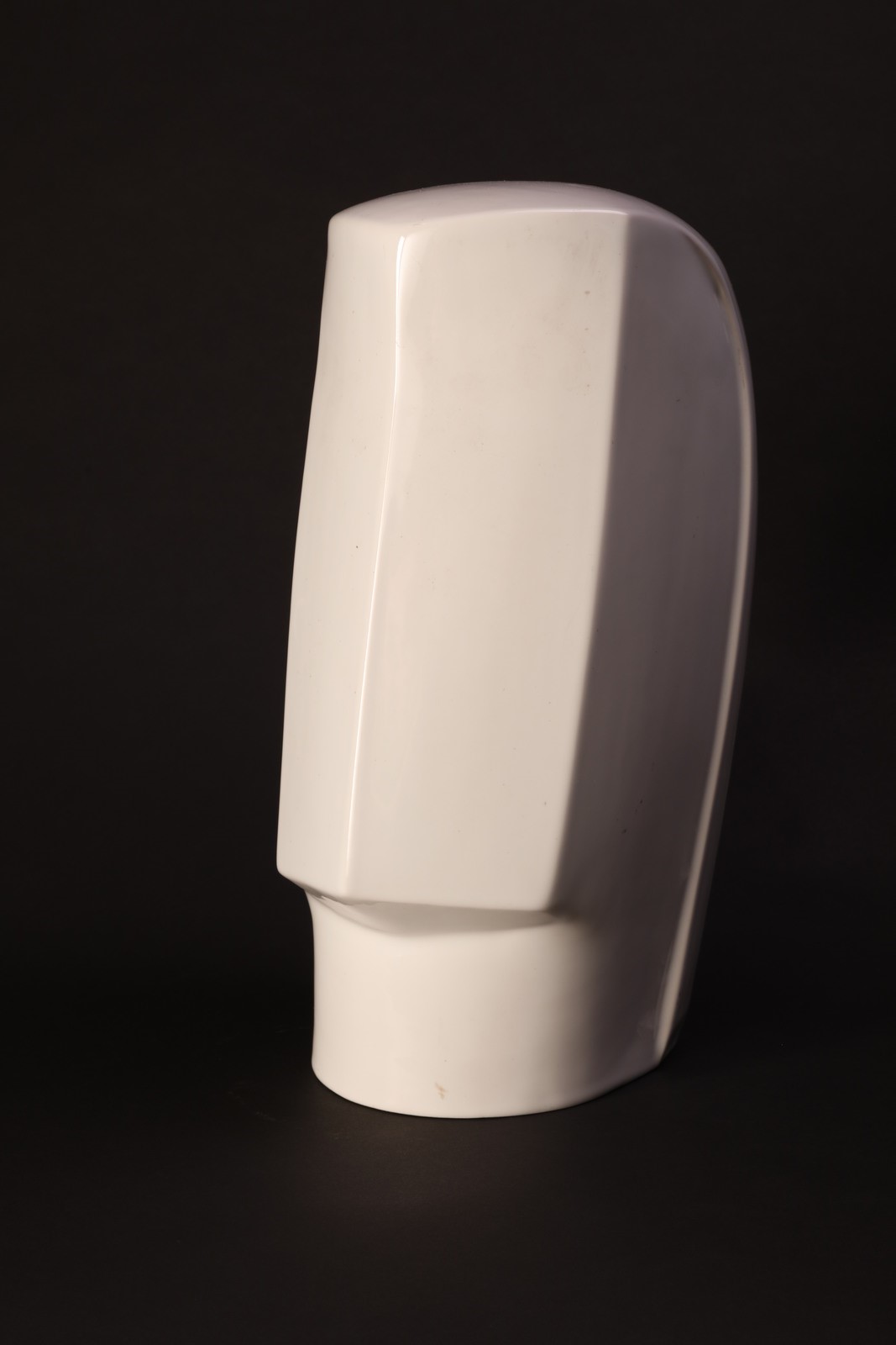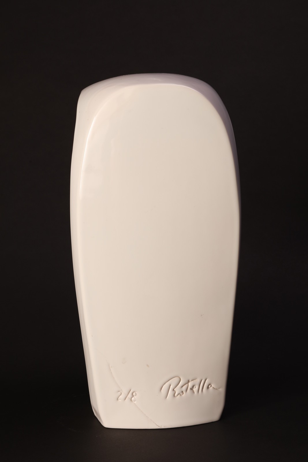 ROTELLA MIMMO (1918 - 2006) Replicante. . porcellana. Cm 20,00 x 35,00 x 16,00. 2/8. Firma e tiratura al retro. Anni '90. Prototipo in ceramica della successiva serie dei replicanti prodotto da Mimmo Rotella per la Manifattura ceramica Fratelli Marchi, Brescia. Foto dell'artista durante la lavorazione dell'opera.