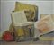 Paolo Coppini Natura morta con libri, 1974 Olio su compensato, cm. 50x60...