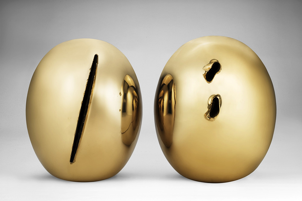 pair of polished bronze sculptures