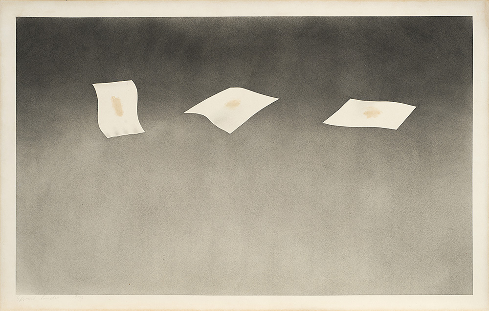 Edward Ruscha (Omaha 1937)"Three Sheets with Raisin Stains" 1973polvere da...