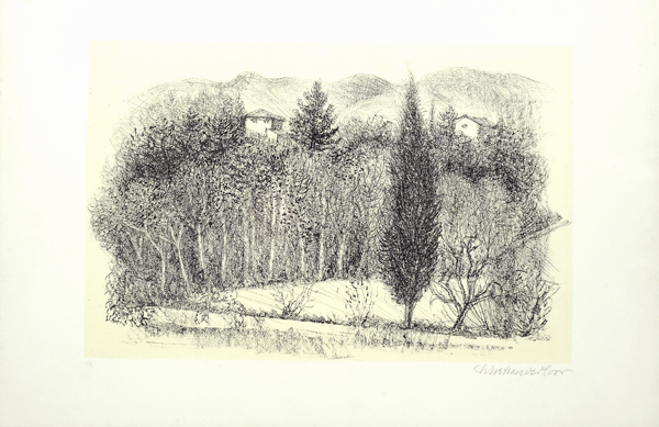 Christian De Moor Paesaggio toscano, 1974 Litografia, mm. 500x700; es. pa...