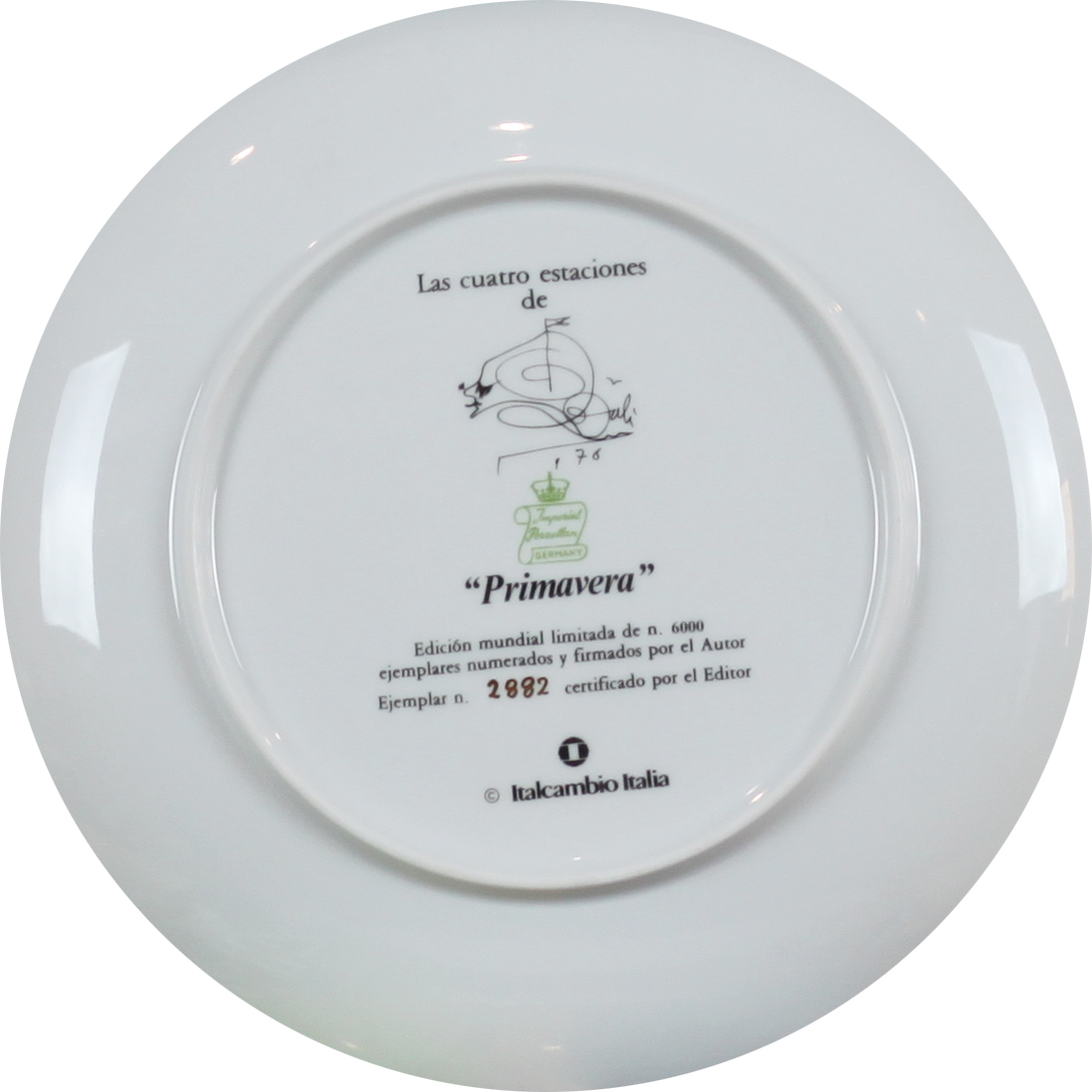 Salvador Dali (Figueres 1904 - Figueres 1989) Primavera Diam. 26 Piatto in ceramica Piatto in porcellana tedesca con la tecnica della cottura dei colori sovrasmalto Piatto faccente parte della serie “Le quattro stagioni” Esemplare 2882/6000 Certificato di autenticità Numerato e firmato al verso