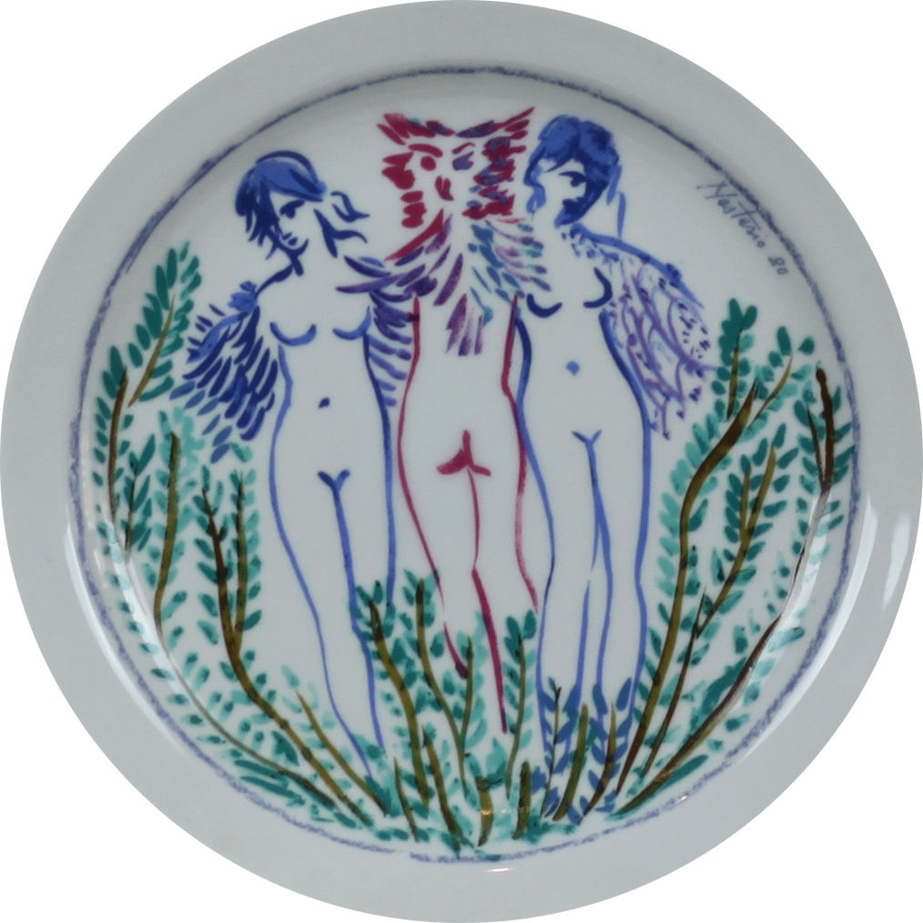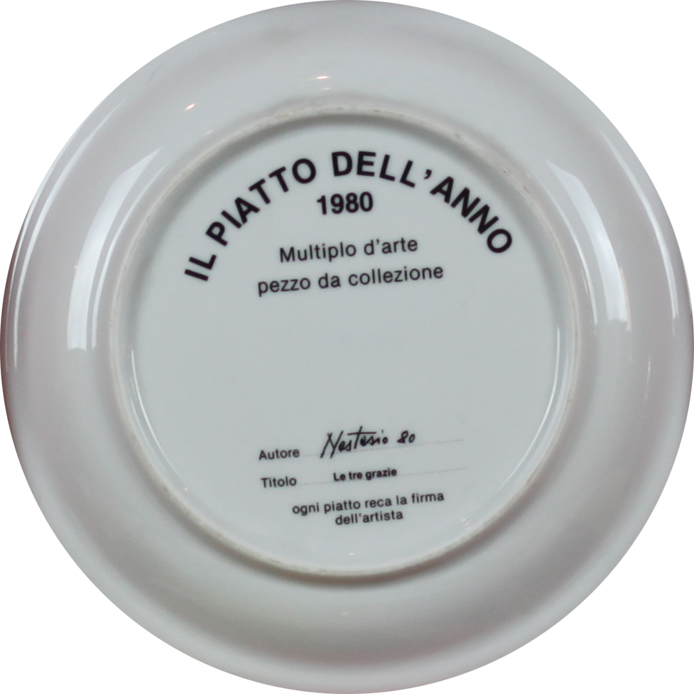 Alessandro Nastasio (Milano 1934) Le tre grazie 1980 Diam. 26 Ceramica smaltata Multiplo d’arte Pezzo da collezione Firmato e datato in alto a dx