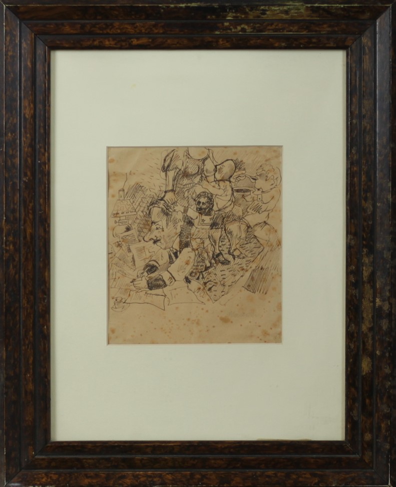 Mino Maccari (Siena 1898 - Roma 1989) La famiglia sulla schiena Anni 30 Dim. 20X18 China su carta Autentica su foto del maestro Mino Maccari Firmato in basso a dx