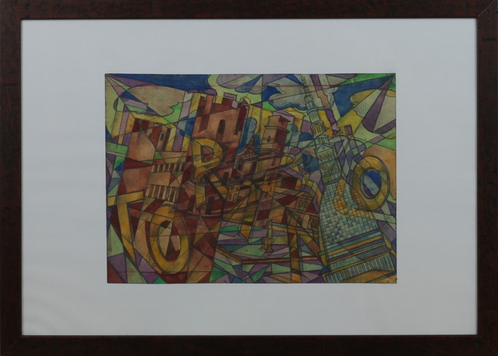 Uberto Bonetti (Viareggio 1909 - Viareggio 1993) Torino Seconda metà anni 30 Dim.22,5x31,3 Tecnica mista su carta Opera archiviata presso l’Archivio Adriana Bonetti al numero 1074 Firmato in basso a dx