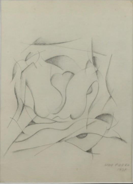 Ugo Pozzo (Torino 1900 - Torino 1981) Nudi 1937 Dim.30x22 Matita su cartoncino Provenienza Romano Lorenzin Milano Al verso Timbro di Romano Lorenzin Firmato e datato in basso a dx