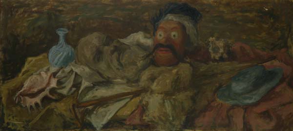 Osman Lorenzo de Scolari (Palermo, 1908 - Firenze, 1998) Natura morta con maschera Olio su tela, cm. 54x119 Firma in alto a sinistra. € 450/650