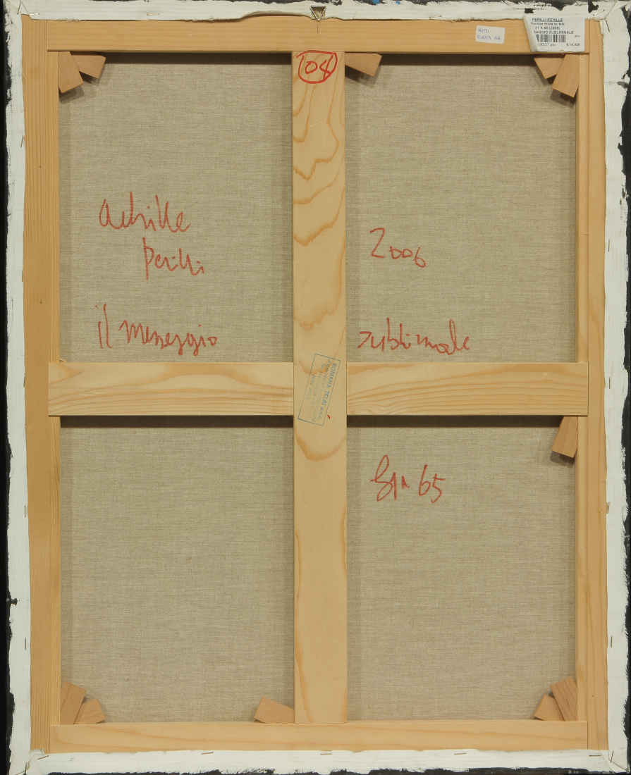 Achille Perilli (Roma 1927) Il messaggio subliminale 2006 Dim.81x65 Pittura e tecnica mista su tela Autentica su foto dell’artista Opera Pubblicata sul catalogo Achille Perilli “Geometrie improbabili” pag. 24 Al verso firma, titolo e data Firmato e datato in basso a sx
