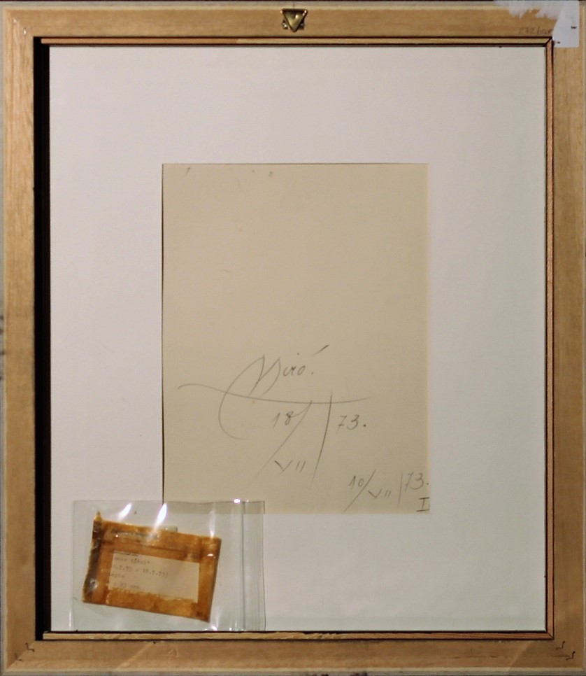Joan Miró (Barcellona 1893 - Palma di Maiorca 1983) Senza titolo 1973 Dim.29,5x23 Matita su cartoncino Opera archiviata presso ADOM, (Association pour la Défense de l'œuvre de Joan Miró) in data 25/04/2017 Firmato e datato al verso