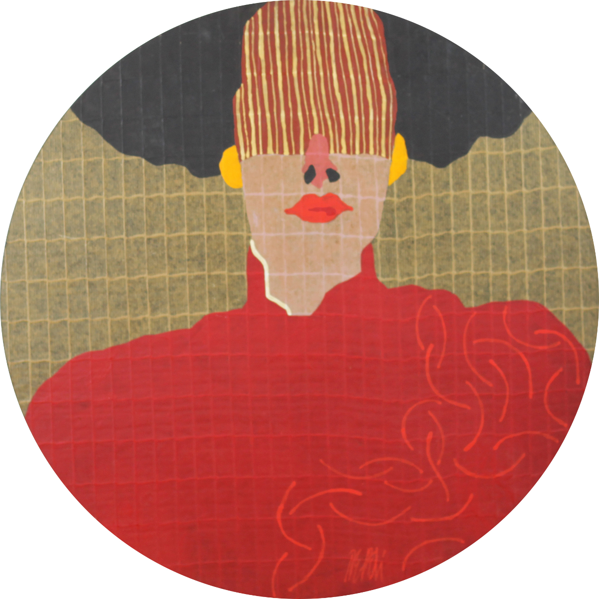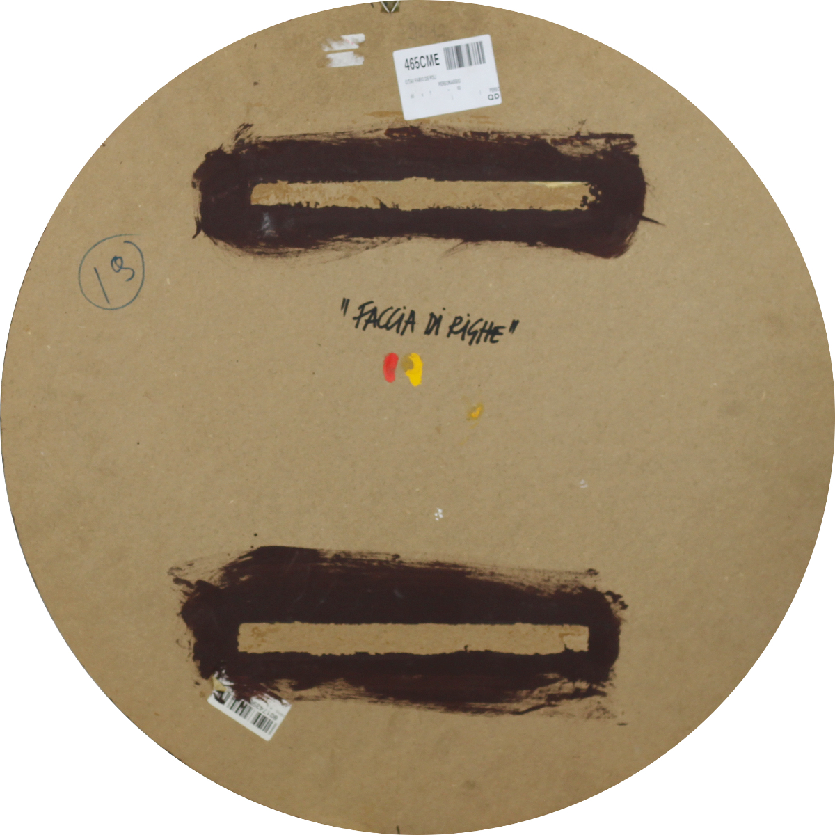 Fabio De Poli (Genova 1947) Faccia di righe Diam.60 Olio e tecnica mista su cartoncino rimesso su tavola Firmato in basso al centro