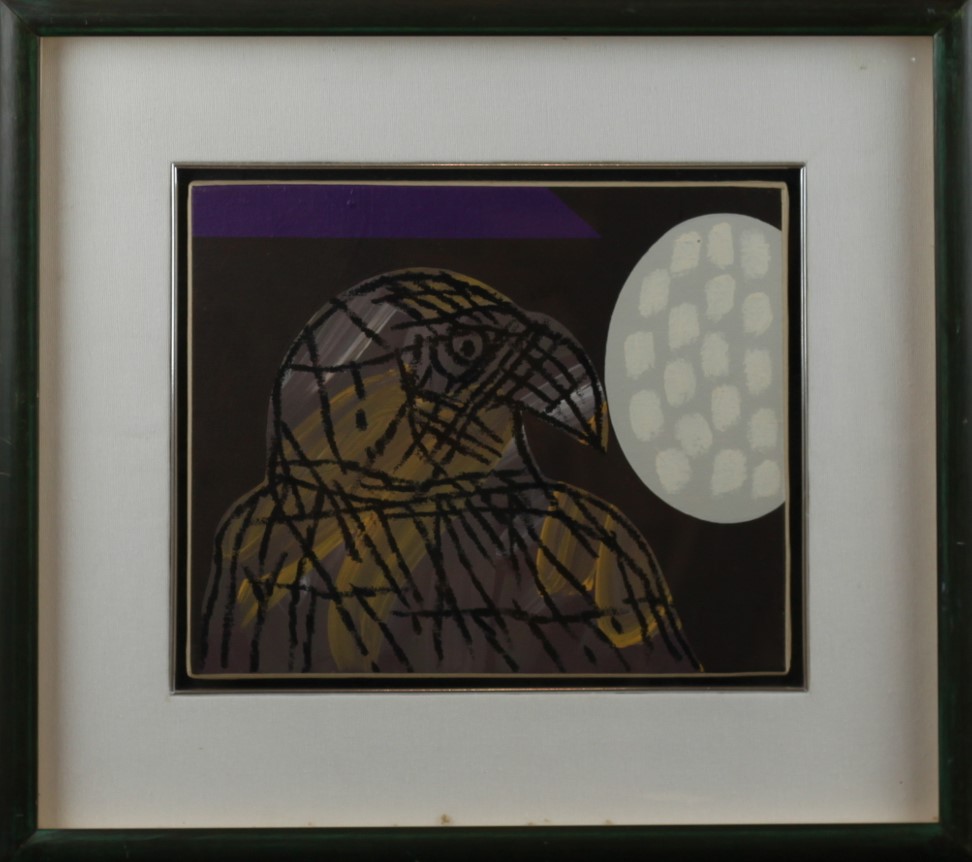 Concetto Pozzati (Vò 1935 - Bologna 2017) Il muso della sentinella 1998 Dim.25x30 Olio e acrilici su tela Al verso titolo