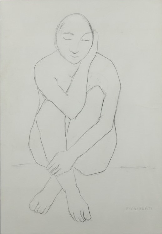 Felice Casorati (Novara 1883 - Torino 1963) Figura femminile Dim.50x35 Matita...