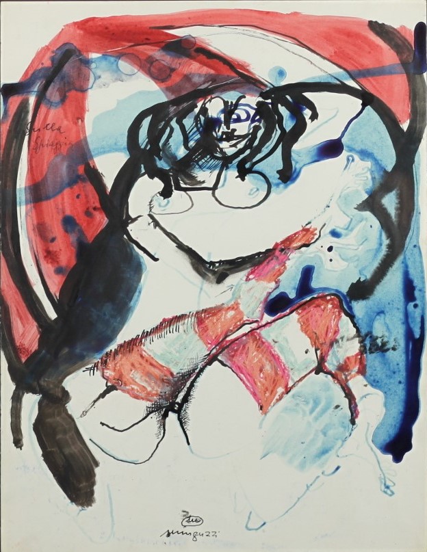 Luciano Minguzzi (Bologna 1911 - Milano 2004) Sulla spiaggia Dim.44x32 Tecnica mista su cartone Firmato in basso al centro
