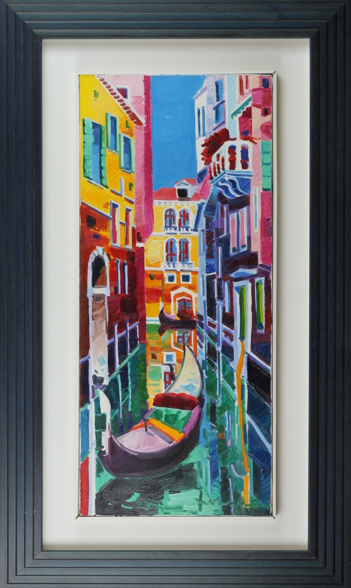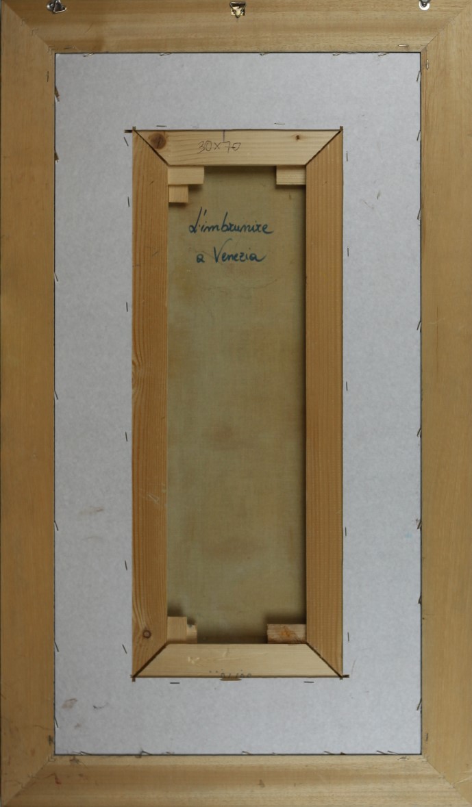 Athos Faccincani (Peschiera Del Garda 1951) L’imbrunire a Venezia 2004 Dim.70x30 Olio su tela Opera archiviata al numero 490G in data 18/01/2005 presso l’Archivio Generale delle Opere di Athos Faccincani Al verso titolo Firmato in basso a dx