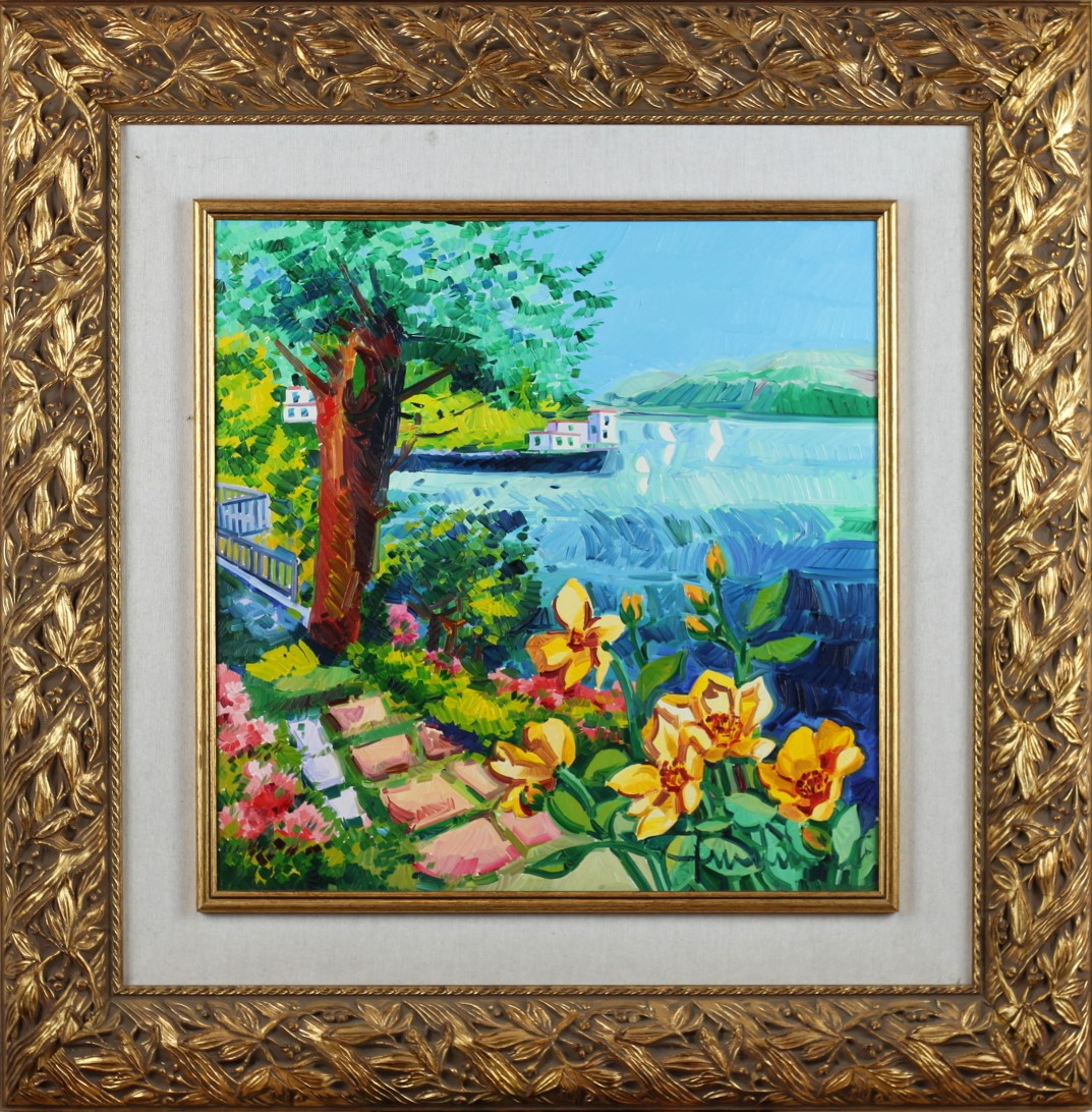Athos Faccincani (Peschiera Del Garda 1951) Poesia sul lago 2006 Dim.50x50 Olio su tela Opera archiviata al numero 1421G in data 09/05/2007 presso l’Archivio Generale delle Opere di Athos Faccincani Al verso titolo e firma Firmato in basso a dx