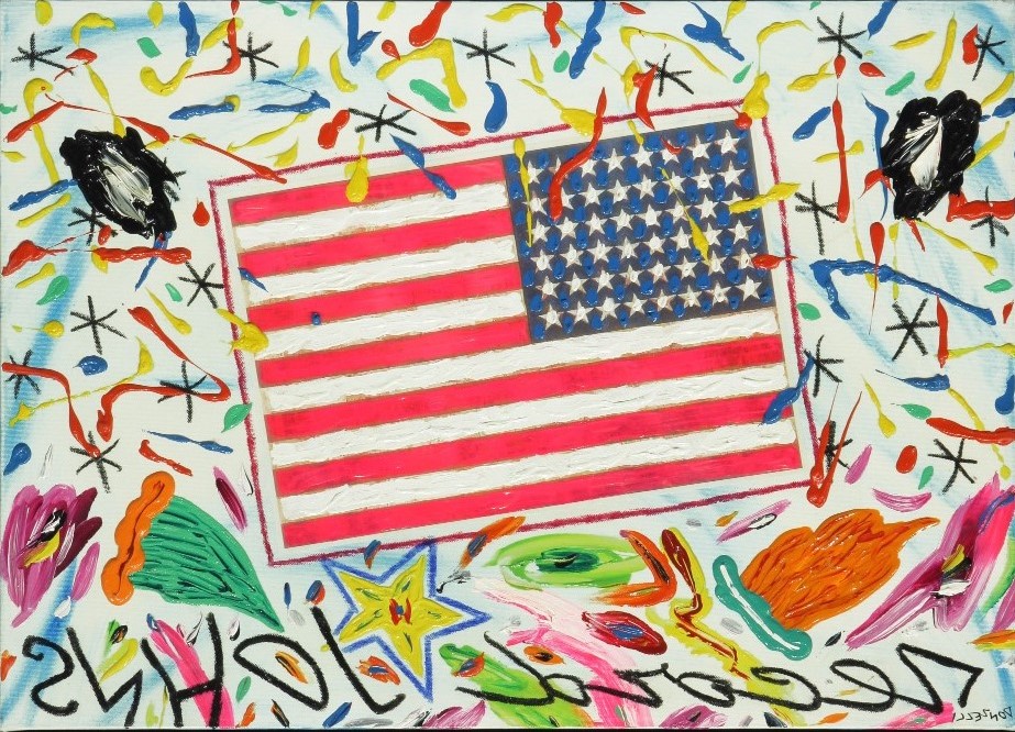 Bruno Donzelli (Napoli 1941) Ricordando Jasper Johns Dim.50x70 Tecnica mista...
