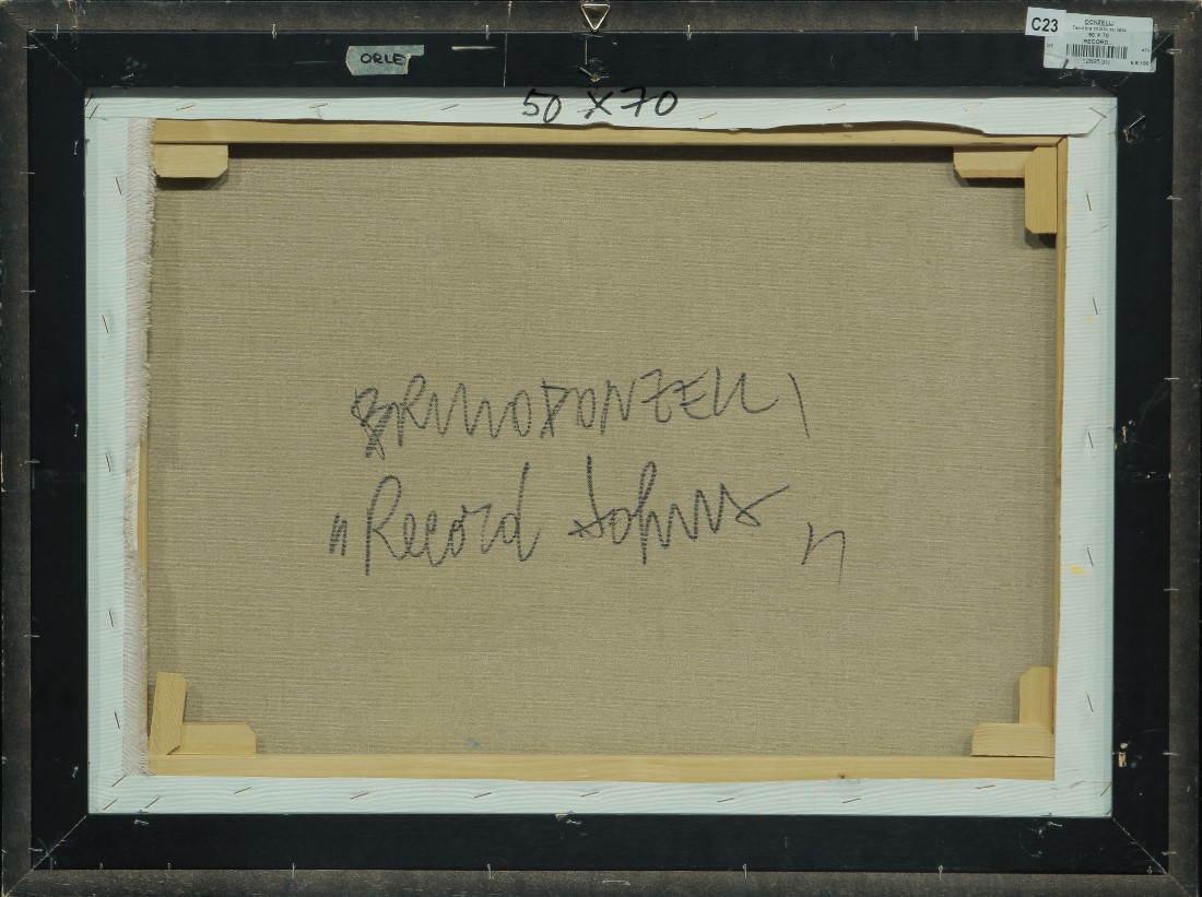 Bruno Donzelli (Napoli 1941) Ricordando Jasper Johns Dim.50x70 Tecnica mista su tela Autentica su foto dell’artista Al verso firma e titolo Firmato in basso a dx