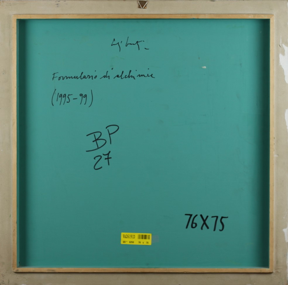 Giorgio Celiberti (Udine 1929) Formulario di alchimie 1995/1999 Dim.76x75 Affresco su tela rimesso su tavola Opera archiviata al numero BP27 presso l’Archivio Giorgio Celiberti Udine Certificato di autenticità Telemarket Al verso titolo, firma e data