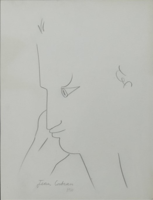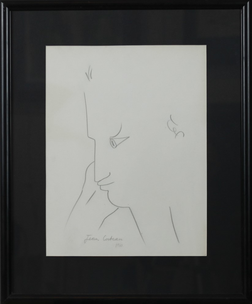 Jean Cocteau (Maisons-Laffitte 1889 - Milly-la Forét 1963) Figura 1960 Dim.44x33 Matita grassa su cartoncino Provenienza Collezione Romano Lorenzin Milano Al verso Timbro Romano Lorenzin Firmato e datato in basso a sx