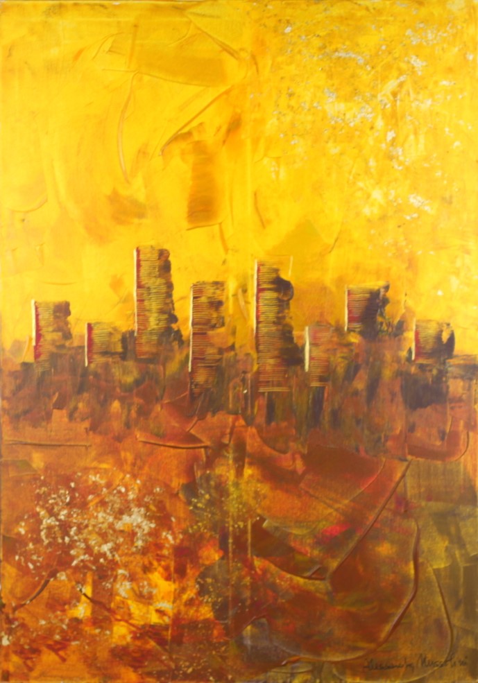 Alessandra Mussolini (Roma 1962) Twin 1- Scaglie oro Anni 2014 Dim.100x70...