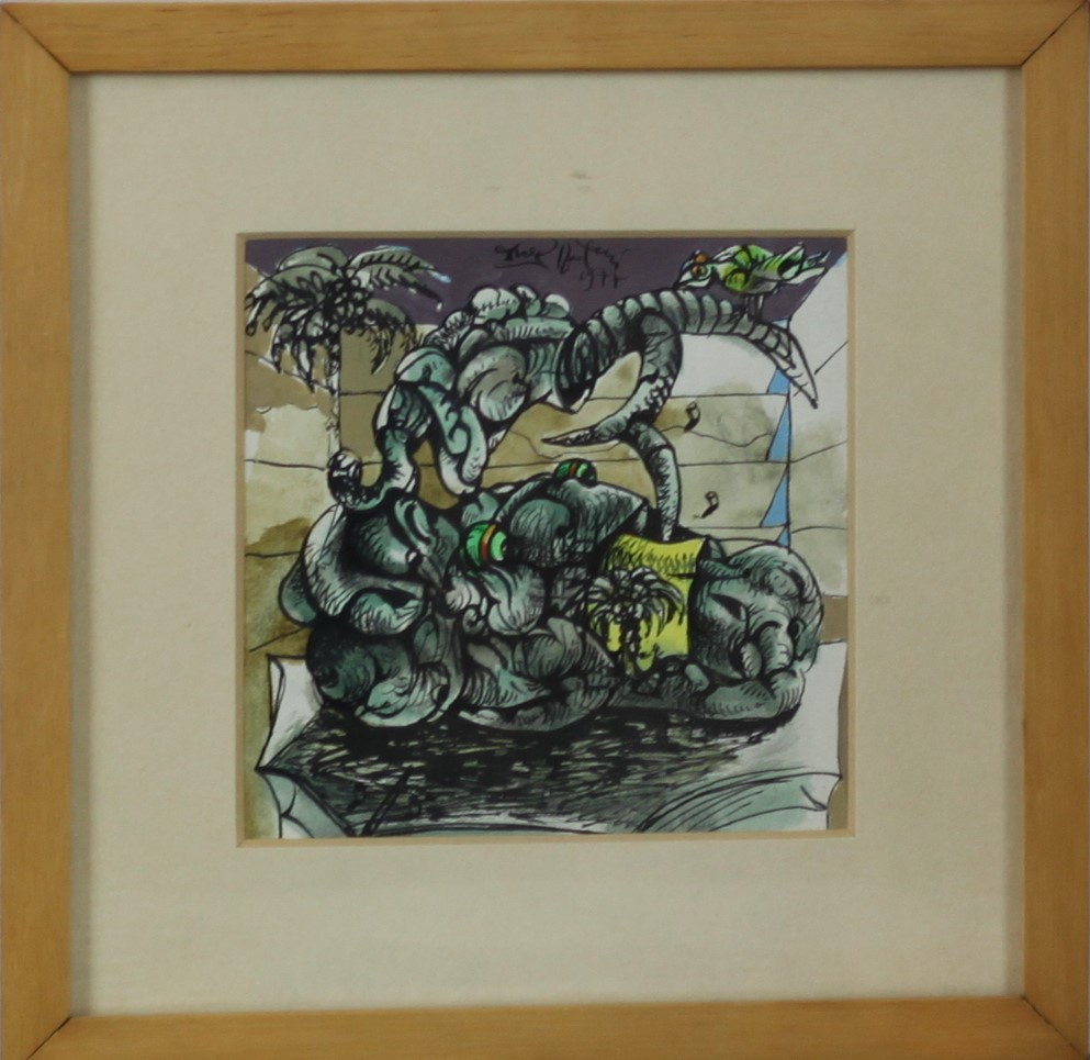 Ercole Pignatelli (Lecce 1935) Senza titolo 1977 Dim.13x13 Tecnica mista su carta Firmato e datato in alto al centro