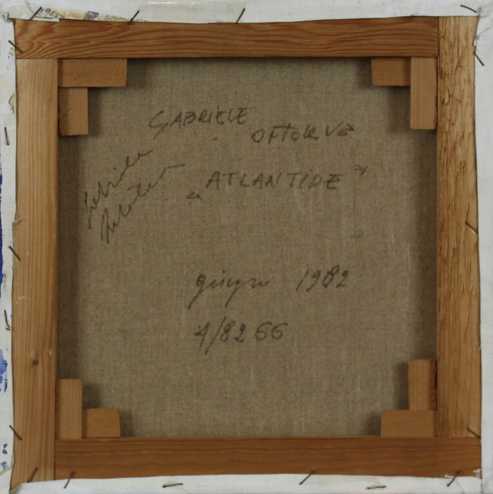 Gabriele Ortoleva Atlantide 1982 Dim.30x30 Acrilici e collage su tela Opera senza cornice Al verso firma, titolo e data