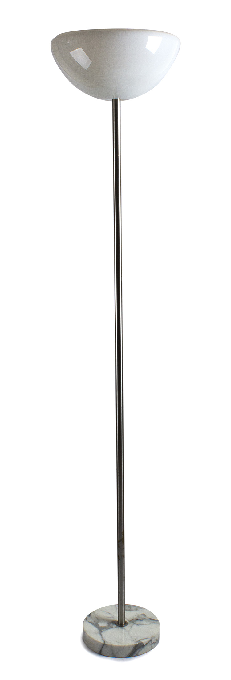 ACHILLE E PIER GIACOMO CASTIGLIONI Lampada da terra “Papavero” Marmo bianco, metallo spazzolato, vetro opalino, h. 200 cm Iscrizione sotto la base: FLOS, PAPAVER, DESIGN REGISTERED, MADE IN ITALY