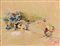 Napoli, 1860 - 1949 Donna con fiori Acquarello su carta marroncina, 16 x 21 cm circa Firma e luogo in basso a destra: V. Irolli, Napoli