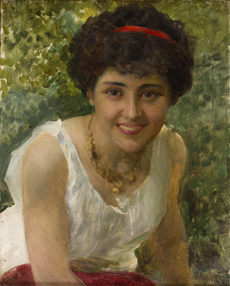 Firenze, 1847 - 1930 Ritratto femminile Olio su tela, 44 x 35 cm Firma in basso a destra: F. Andreotti