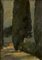 Trieste, 1856 - Venezia, 1922 Cipressi Olio su cartone rigido, 19,3 x 14,3 cm Firma in basso a destra: P. Fragiacomo Titolo al retro in alto a sinistra: Cipressi Autentica e firma della sorella del pittore: “Questo dipinto è opera autentica di mio fratello Pietro Fragiacomo, in fede, Antonietta Fragiacomo”