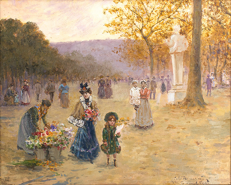 Napoli, 1861 - 1920 Villa Comunale Olio su tavola, 34,5 x 42 cm Firma, titolo e luogo in basso a destra: Carlo Brancaccio, Villa Comunale, Napoli