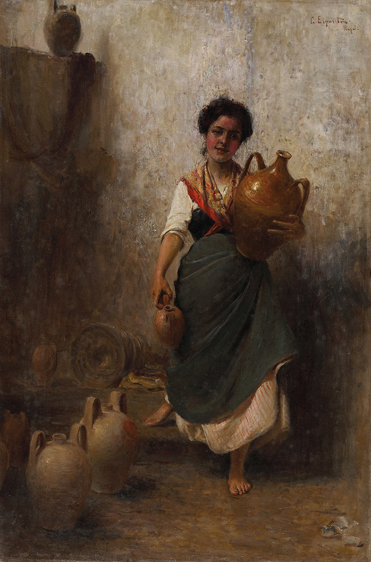 Salerno, 1858 - Sala Consilina, 1911 L’acquaiola Olio su tela, 80,5 x 53,5 cm Firma e luogo in alto a destra: G. Esposito, Napoli