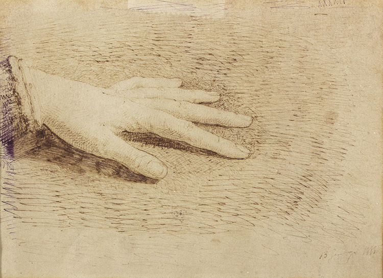 Volpedo, 1868 - 1907 Mano, 1885 Inchiostro su carta, 11,6 x 16 cm circa Data in basso a destra: 13 gennaio 1885