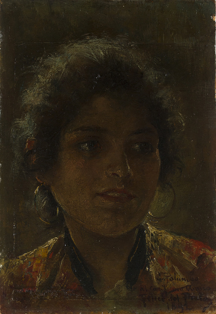 Napoli, 1859 - 1916 Ritratto di fanciulla, 1892 Olio su tavola, 21,3 x 14,8 cm Firma, dedica e data in basso a destra: L. Palumbo, “Al carissimo amico Felice del Prato”, 1892