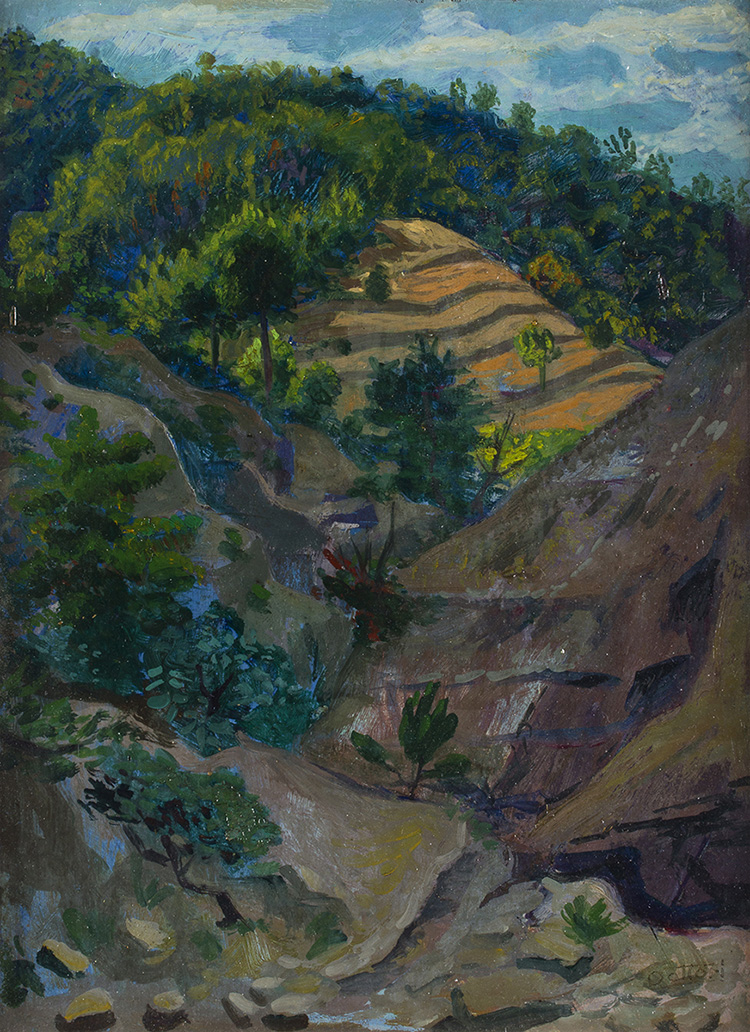 GERARDO DOTTORIPerugia, 1884 - 1977 Paesaggio umbro, Anni ‘40 Olio su tavola,...