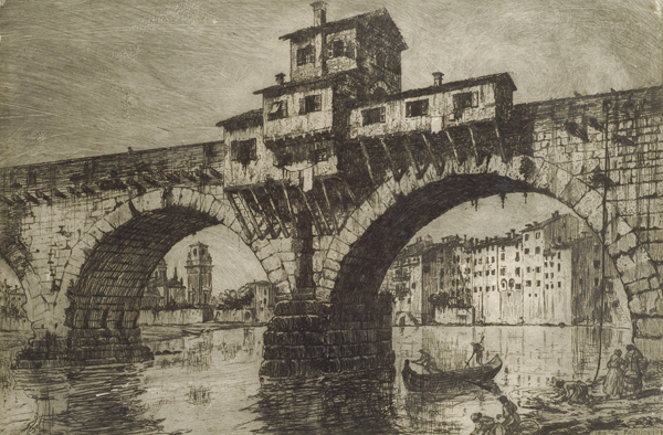 E. Fagiuoli Ponte della pietra a Verona, 1916 Acquaforte, mm 320x450 Firma e...